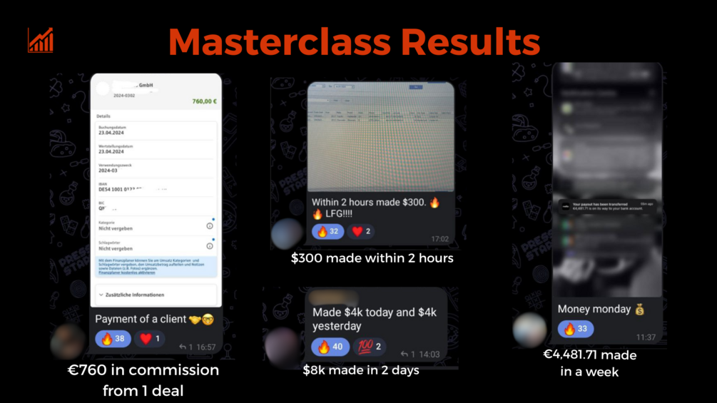The masterclass is designed to equip you with the skills and strategies needed to begin earning commissions as quickly as possible, often within the first few weeks. -