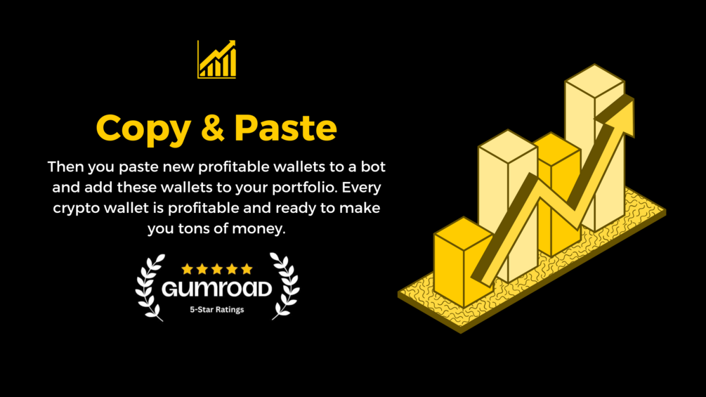 2. Then you paste new profitable wallets to a bot and add these wallets to your portfolio. Every crypto wallet is profitable and ready to make you tons of money.